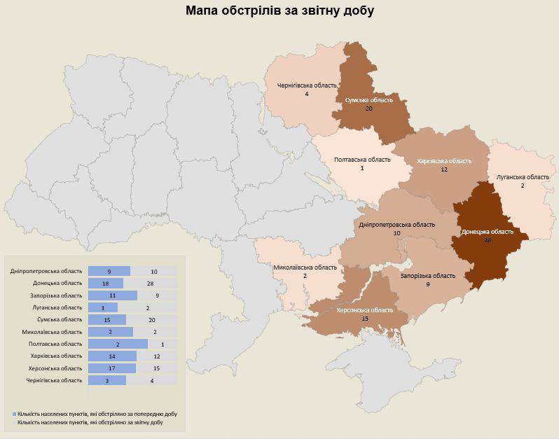 Протягом минулої доби російські війська обстріляли територію 10 областей України.