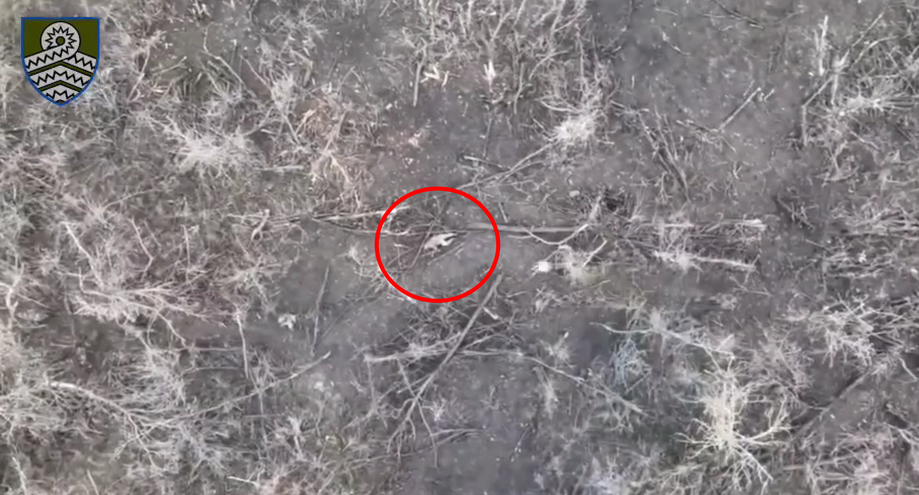На кадрах видно, як три одиниці ворожої піхоти намагаються просунутися вздовж розбитої посадки.