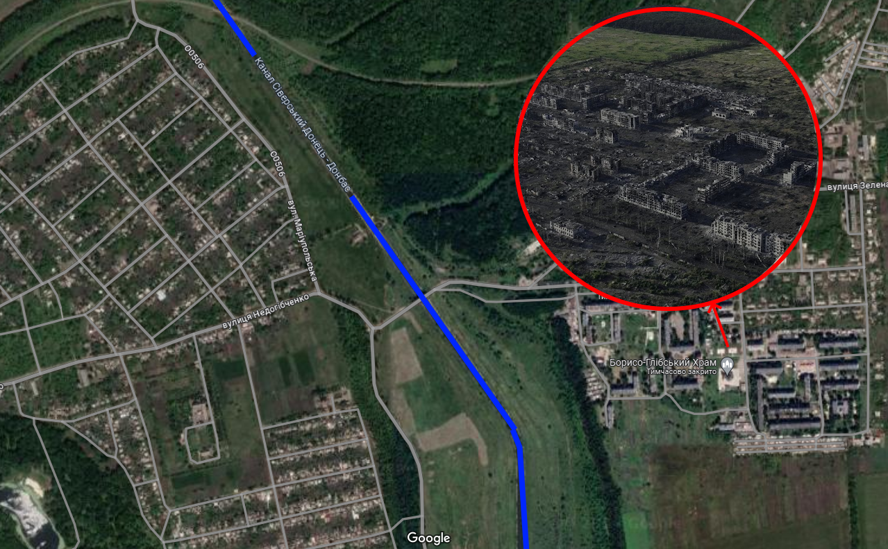 Після повного руйнування мікрорайону «Канал» та відходу Сил оборони з нього, лінія бойового зіткнення проходить по каналу Сіверський Донець-Донбас.