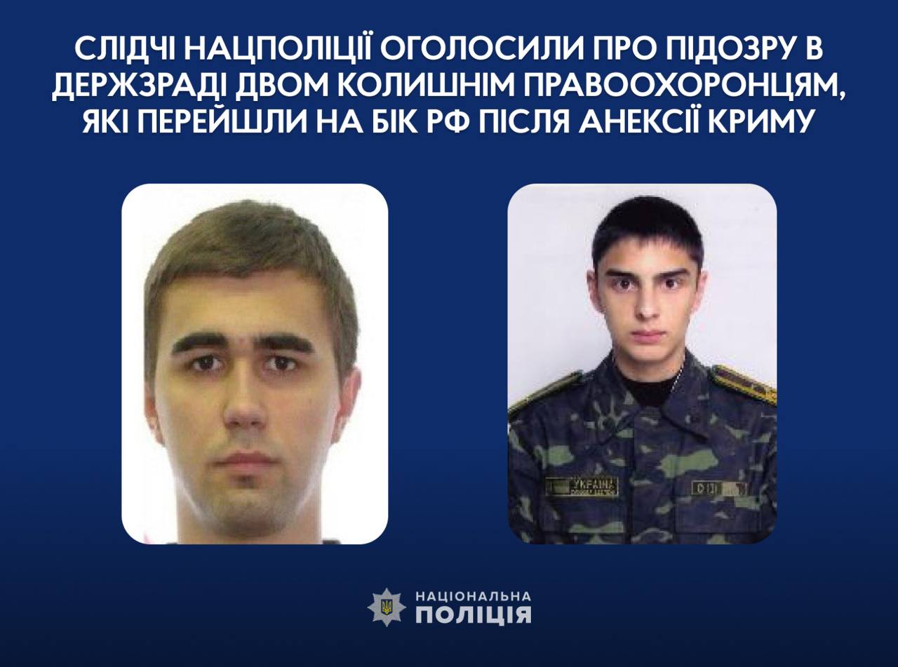 Слідчі Національної поліції оголосили про підозру в держзраді двом колишнім правоохоронцям, які перейшли на бік рф після анексії Криму.