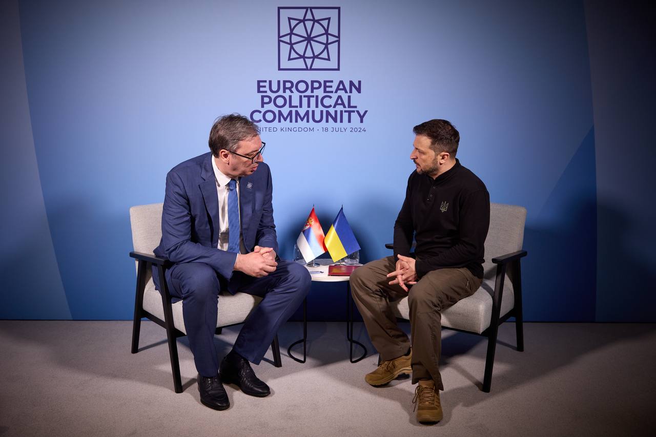 Президент Володимир Зеленський зустрівся з сербським колегою Александром Вучичем на полях саміту Європейської політичної спільноти у Великій Британії.