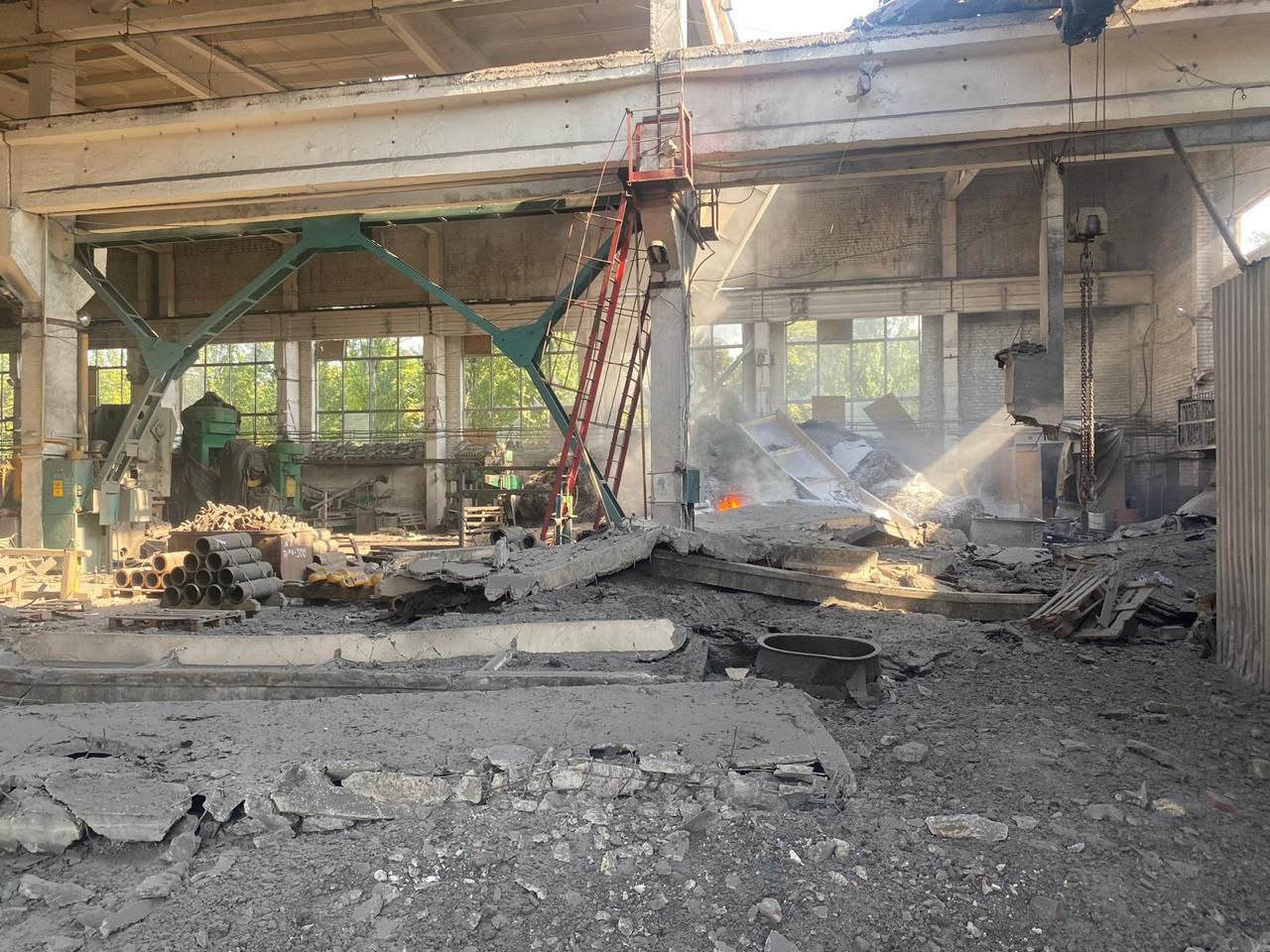 Зокрема, пошкоджено 3 адмінбудівлі, 2 житлові двоповерхівки та промислове приміщення.