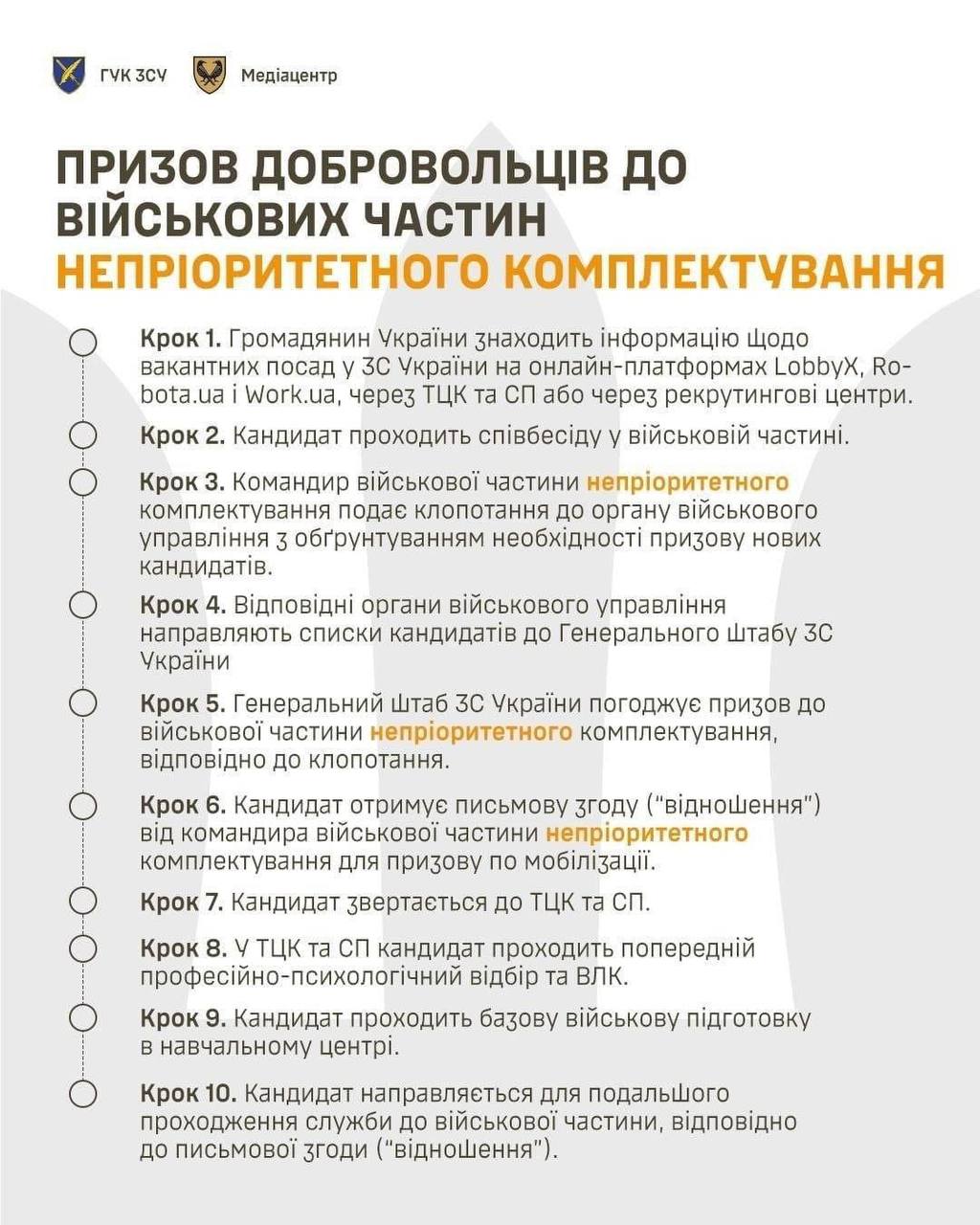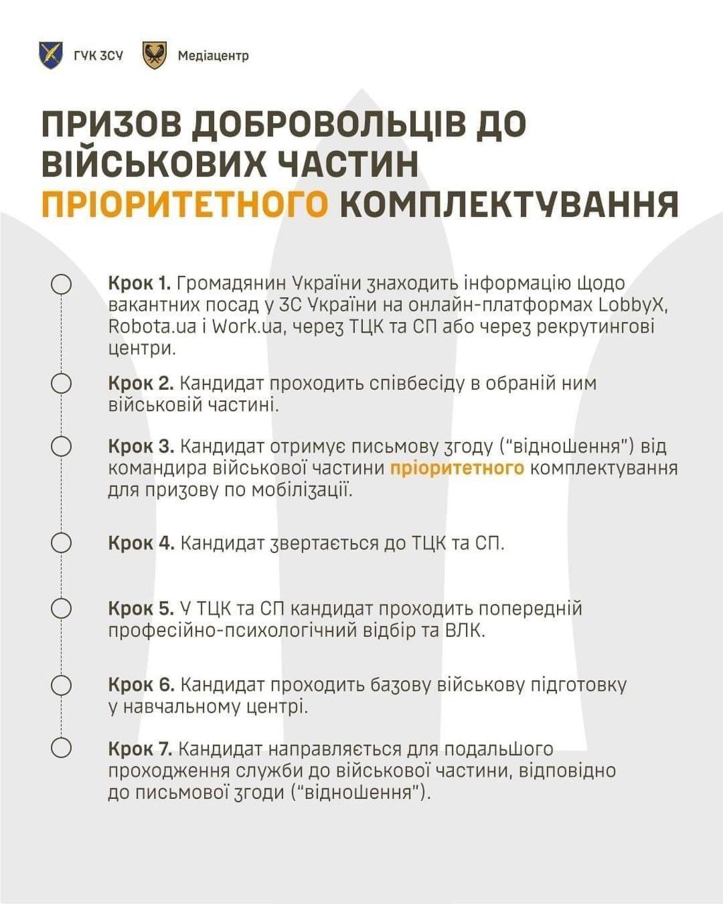 Як повідомляла АрміяInform, Головне управління персоналу Генерального штабу ЗСУ надало детальне роз’яснення процедури рекрутингу для добровольців.