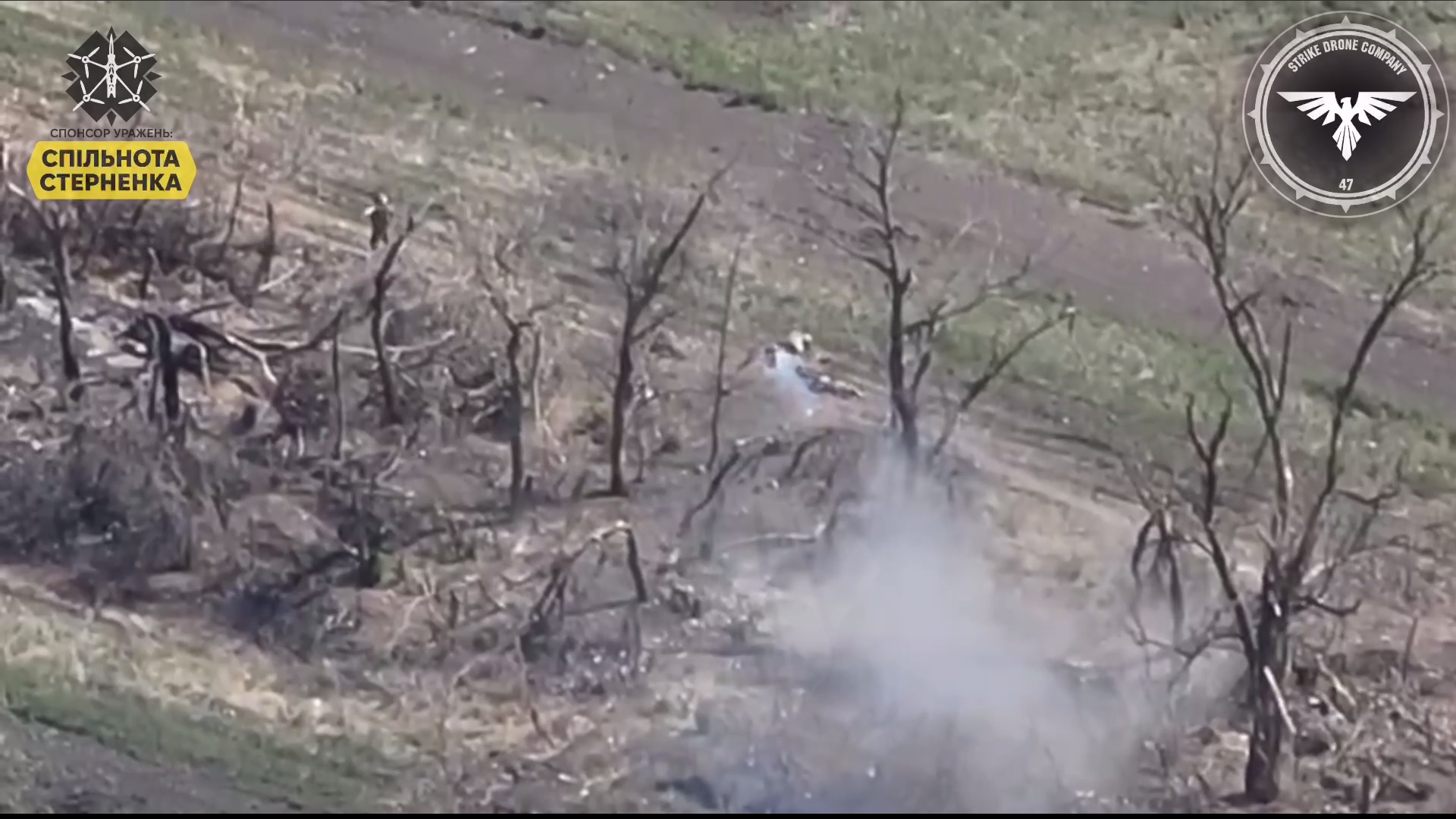 Семеро росіян ішли групою уздовж лісосмуги, коли прилетів український дрон. Загарбники спробували розбігтися, але було вже запізно.