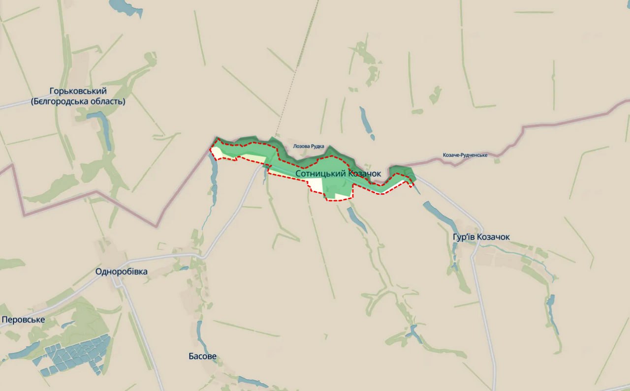 На північному заході кордону України з рф у Харківській області окупанти використовують всі наявні у них засоби для обстрілів села Сотницький Козачок і намагаються вторгнутись на територію України, однак Сили оборони успішно перешкоджають цим спробам.