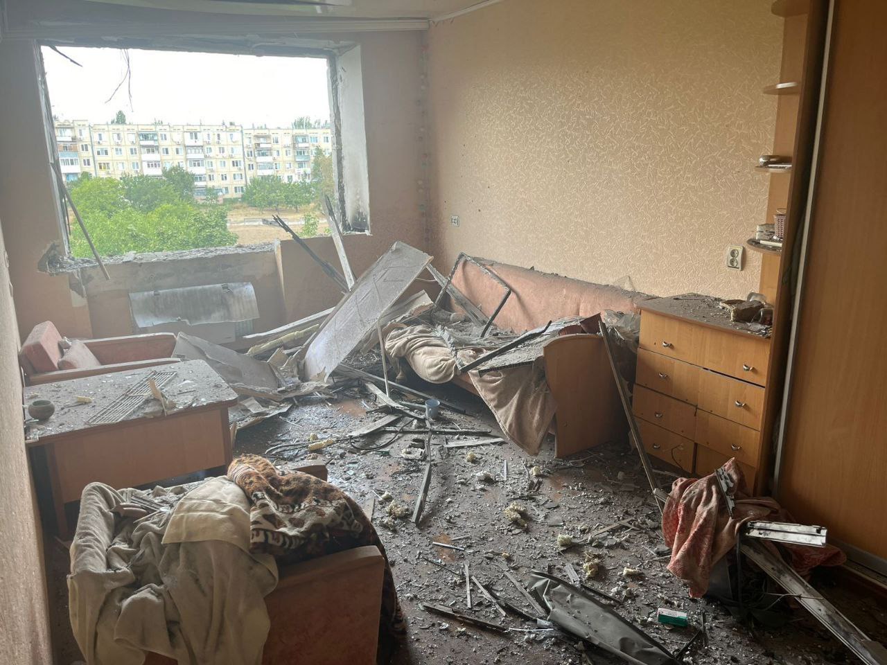 Ударами пошкоджено п’ятиповерхівку та чотири приватні оселі, а також три господарські споруди, паркани, газопровід.