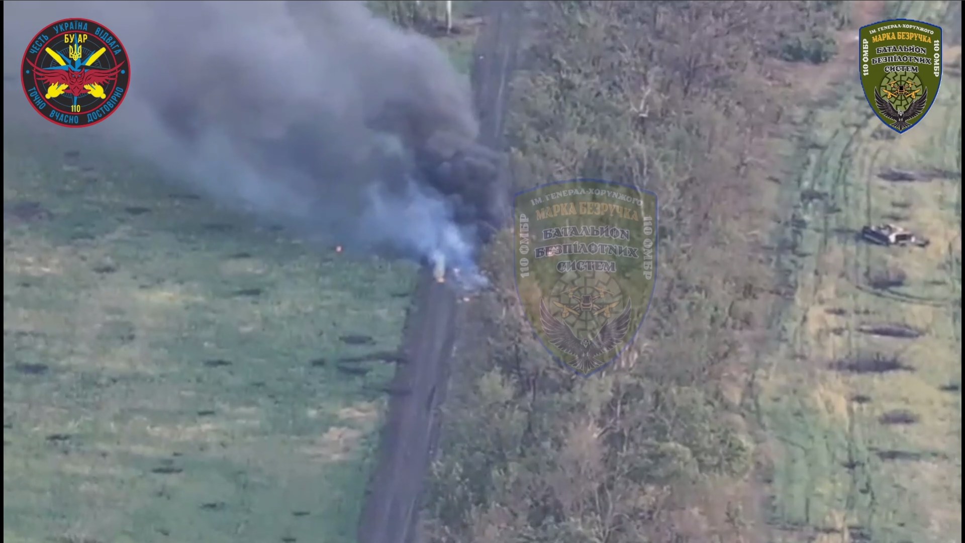 Далі за справу узялися FPV-дрони, які спалили і вантажівку, і гармату.