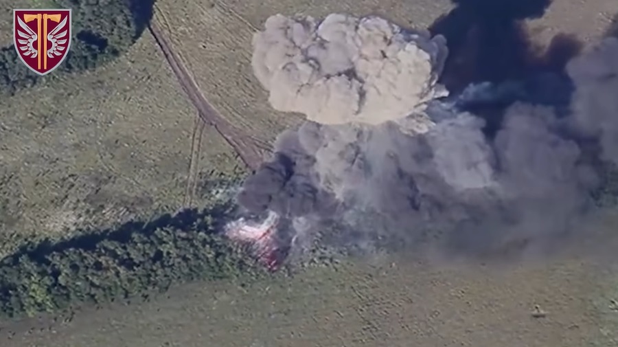Оператори ударних БПЛА 77 окремої аеромобільної бригади ДШВ ЗС України ефектно знищили самохідну артилерійську установку противника: через детонацію боєкомплекту російський мотлох згорів за лічені хвилини.