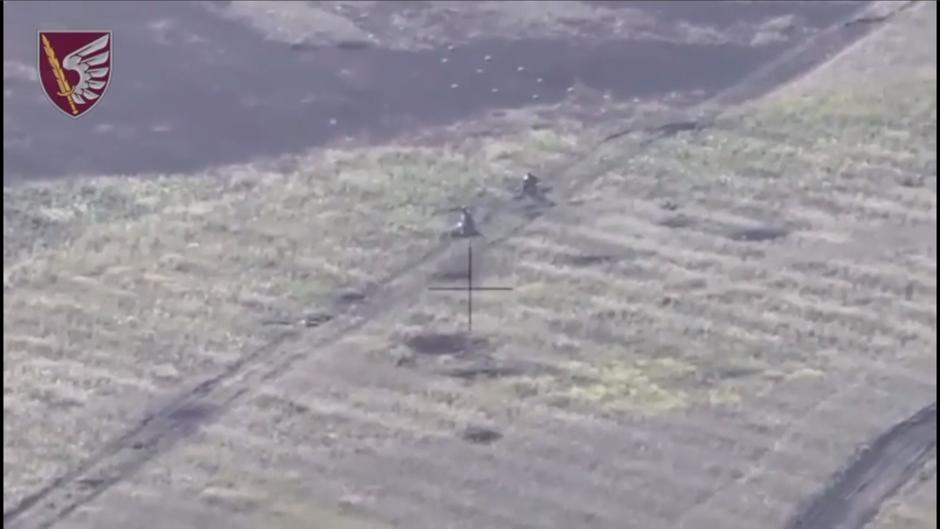 Двоє загарбників на мотоциклах рушили в бік наших позицій. Після роботи артилерії росіяни втратили транспорт, але рушили вперед пішки.