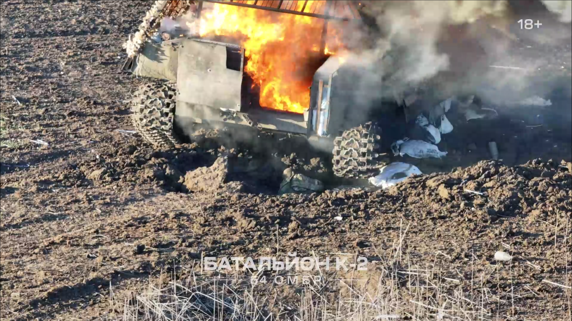 «Якщо облетіти поле перед уже знайомими для наших глядачів окопами, де тримає оборону Батальйон К-2, можна побачити чимало спаленої російської техніки. Окупанти на якийсь час змінили тактику і замість великих колон досилають по одній або дві МТ-ЛБ з десантом. Цікаво, чи здогадується росіянин, який їде в “мотолизі”, що вже за кілька хвилин він буде горіти живцем під своєю ж машиною?», — поцікавилися у К-2.
