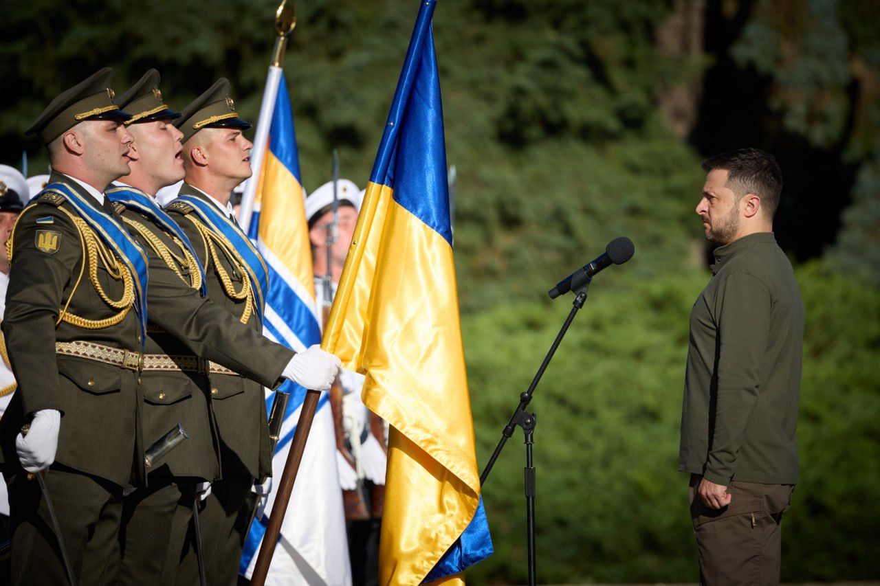 Президент України Володимир Зеленський привітав з Днем державного прапора під час урочистостей з нагоди, що відбулися в Києві біля монумента «Батьківщина-Матір».