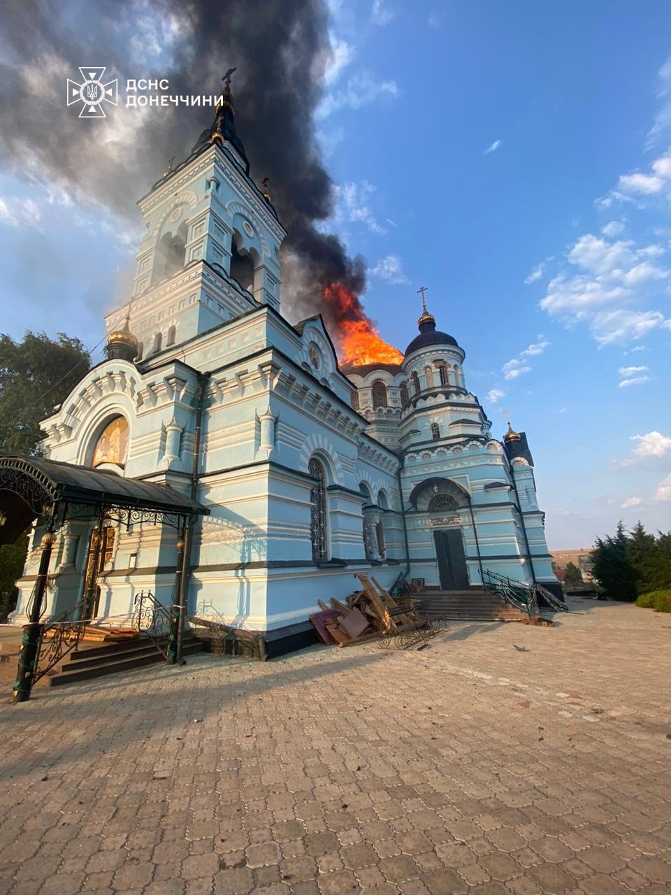 Учора ввечері ворог завдав удару по селищу Новоекономічне Покровського району. Внаслідок обстрілу виникла пожежа місцевого храму.
