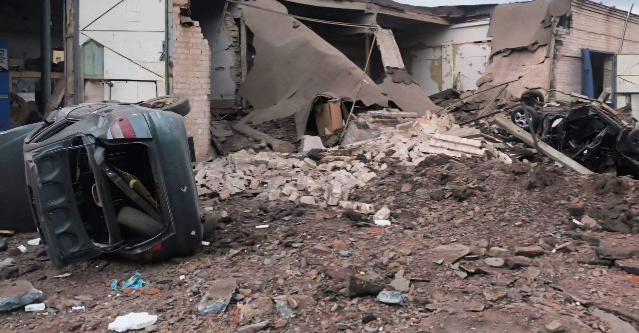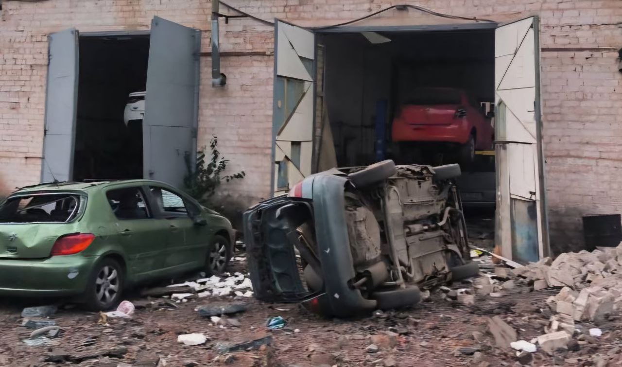 Також місті понівечений гаражний кооператив, 12 авто. Вибиті вікна у готелі.