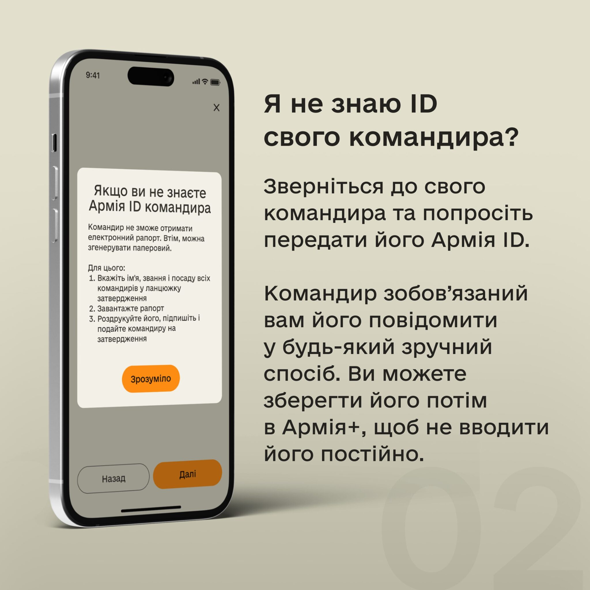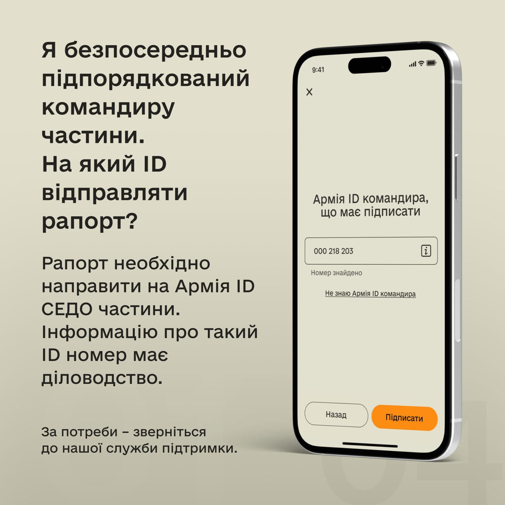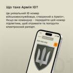 Зазначено, що Армія ID — це унікальний номер військовослужбовця в застосунку Армія+. Саме через нього можна подавати електронні рапорти.