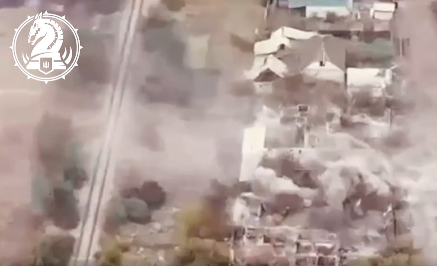 На кадрах можна побачити, як наш дрон відстежив переміщення ворога і його схованку в одній із будівель. Невдовзі після цього артилерія завдала удару по окупантах.