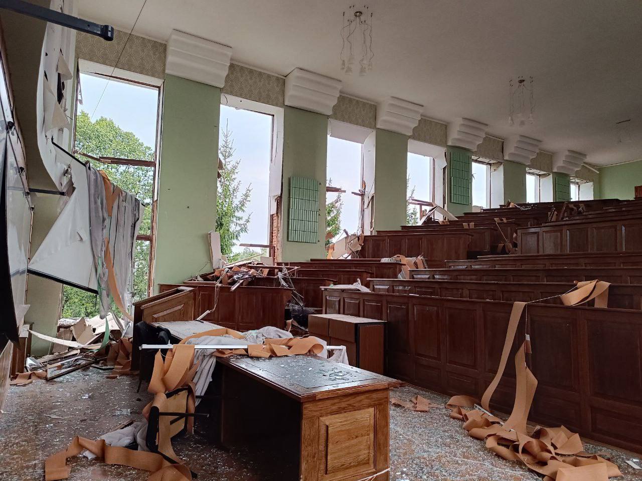 Голова Харківської ОДА Олег Синєгубов опублікував фото наслідків обстрілу одного з вищих навчальних закладів міста.