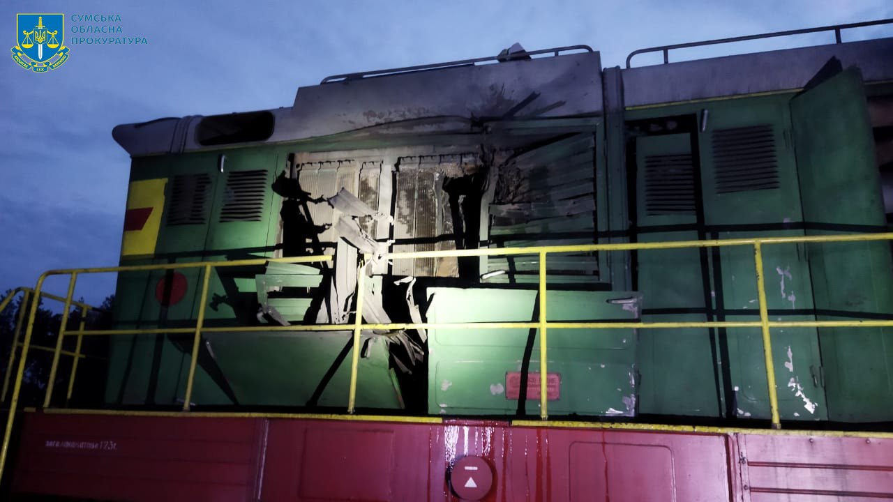 Зранку 3 вересня 2024 року, застосовуючи заборонені міжнародним правом методи ведення війни, окупанти атакували безпілотником локомотив поїзда, який перебував на одній із залізничних станцій в Сумському районі.