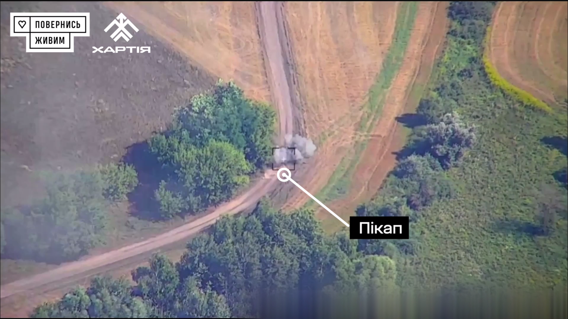 Від мотоциклів та пікапів з піхотою до гармат і танків — за допомогою БПЛА «Шарка» вражається все, що попадає в його очі.