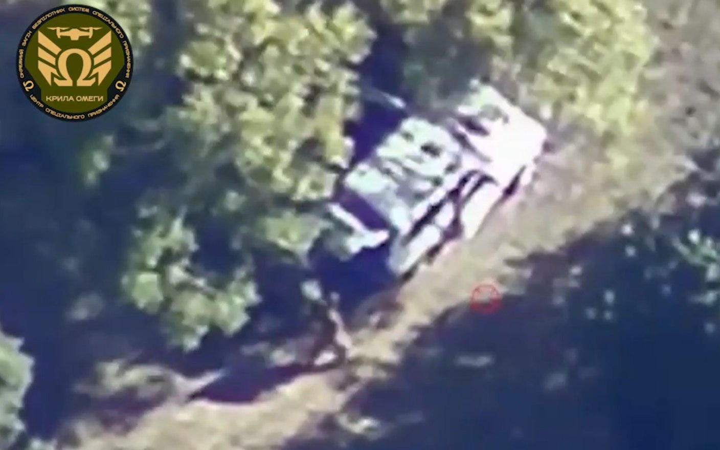 У ролику видно, як російський загарбник підходить до авто. Його помічають українські аеророзвідники. Далі підлітає дрон та знищує його.