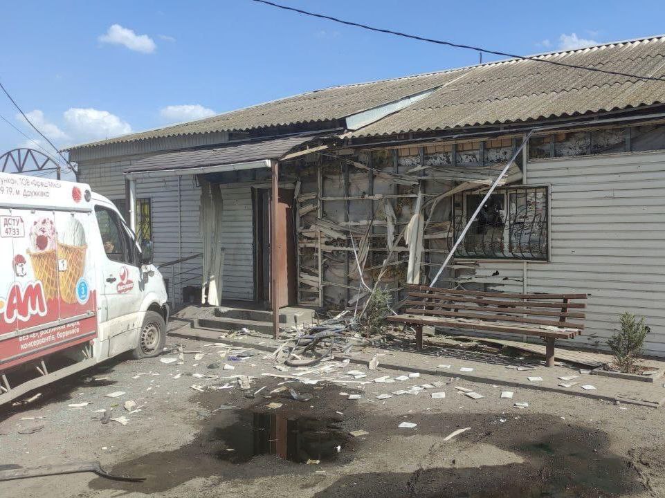 Внаслідок обстрілу пошкоджені 6 приватних будинків, кав’ярня, крамниця, адмінбудівля, лінія електропередач і 12 автомобілів.