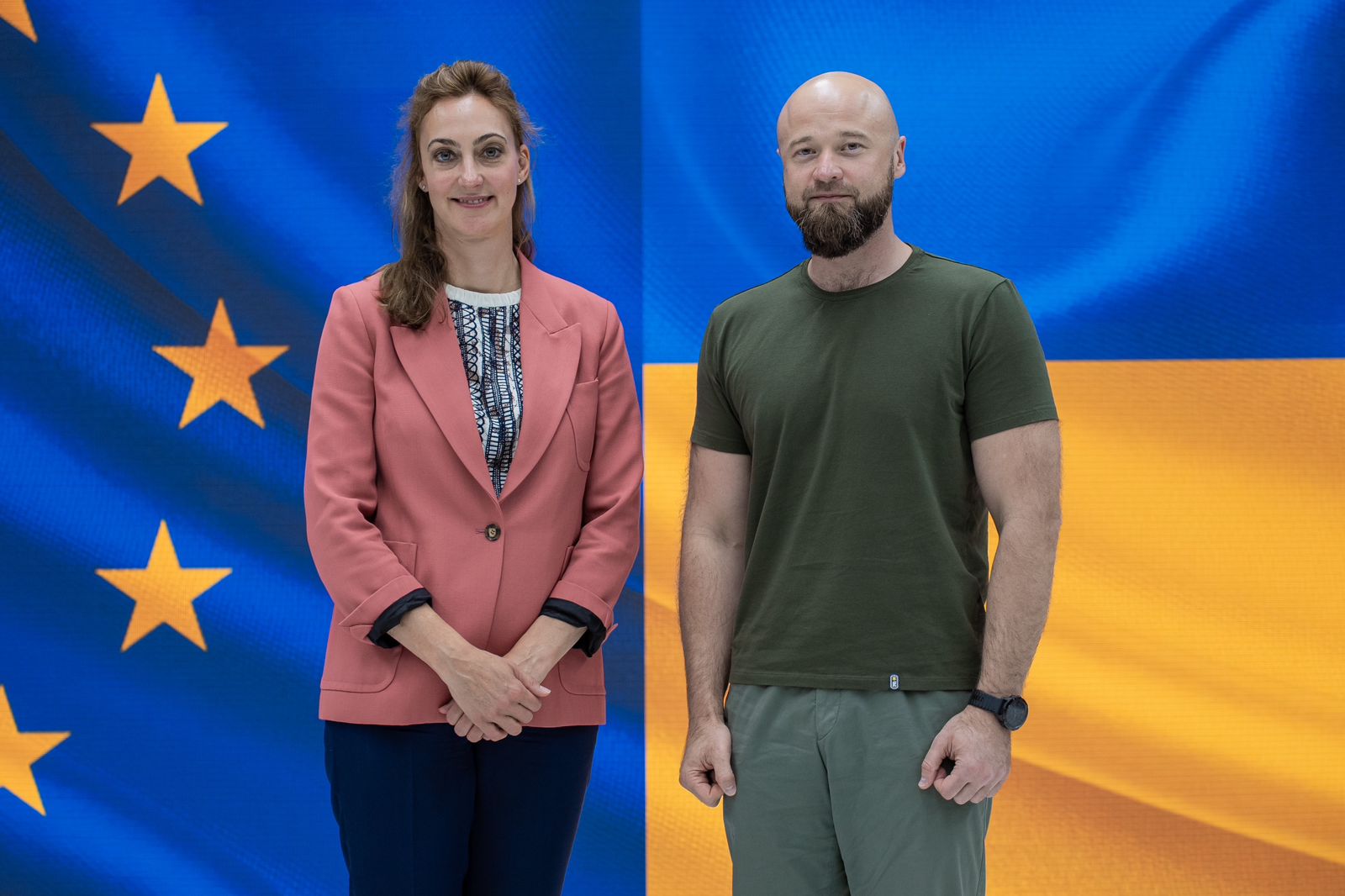 Заступник Міністра оборони України Дмитро Кліменков з командою обговорили з делегацією ЄС на чолі з керуючою директоркою департаменту з питань миру, безпеки і оборони Європейської служби зовнішньої діяльності Бенедіктою Фон Зехерр-Тосс шляхи використання відсотків від заморожених російських активів.