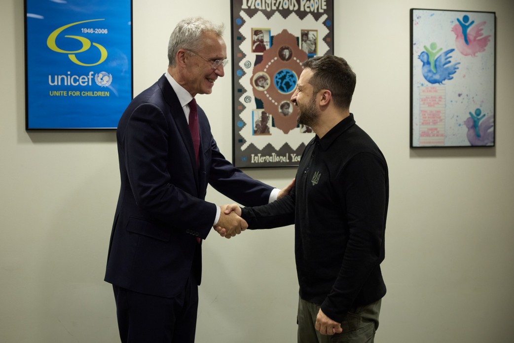 Президент України Володимир Зеленський у Нью-Йорку провів зустріч із Генеральним секретарем НАТО Єнсом Столтенбергом і обговорив з ним необхідність посилення української ППО.