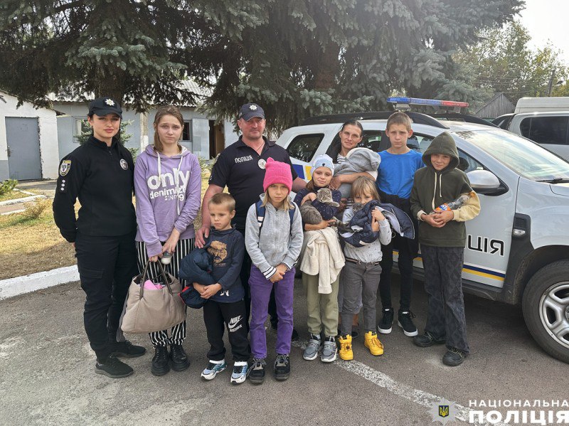 Співробітники Новгород-Сіверського районного відділу поліції у взаємодії з місцевою владою евакуювали з обстрілюваного прикордонного села 33-річну жінку та її вісьмох дітей віком від п'яти місяців до 15 років.