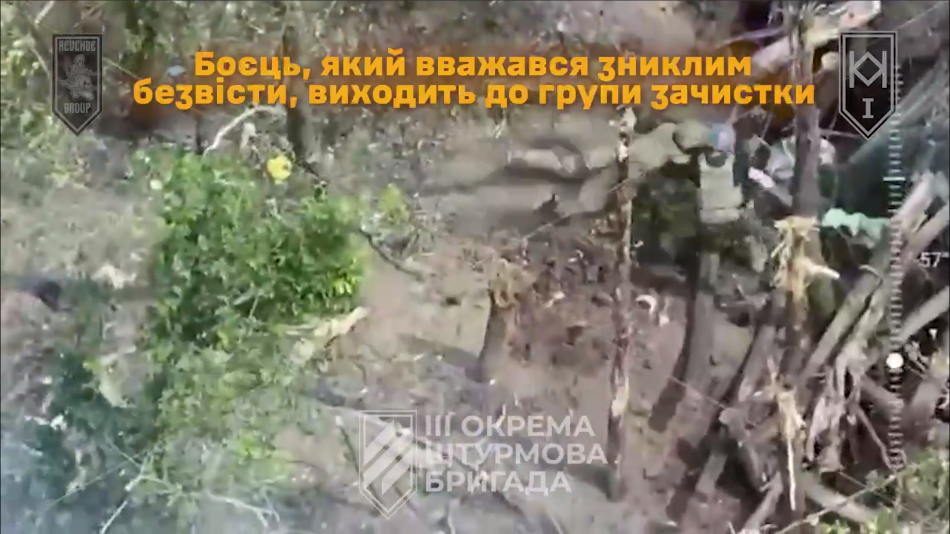 «На наш спостережний пункт противник здійснив хімічну атаку та пішов у накат, але вже за пару годин підрозділи бригади розпочали зачистку. Залучили безпілотні засоби, закидали противника скидами й FPV, поки штурмові групи вели ближній бій на землі. Коли наші ліквідували піхоту окупантів, а позиція запалала, ще один трьохсотий росіянин випилився зі своєї гвинтівки сам», — прокоментували відео у 3 штурмовій.