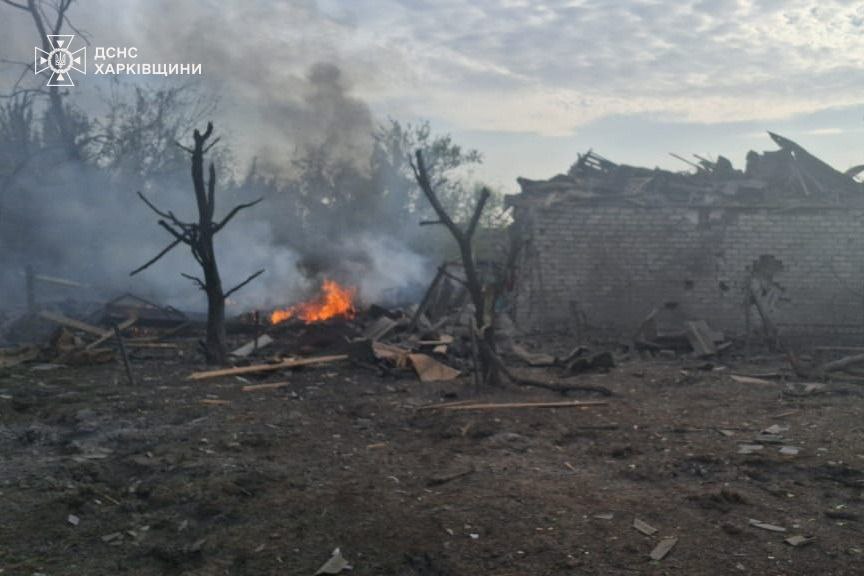 Фото руйнувань внаслідок ворожого обстрілу села Нижче Солоне оприлюднили у Харківській обласній прокуратурі, Головному управлінні ДСНС України у Харківській області, ДСНС України.