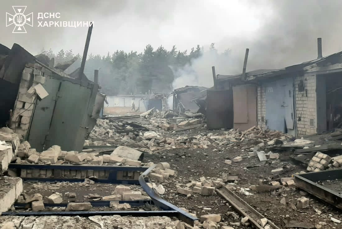 Там повідомили, що внаслідок удару авіабомбами повністю згоріли 8 гаражів та автівка. Загальна площа пожежі становила понад 240 кв.м.