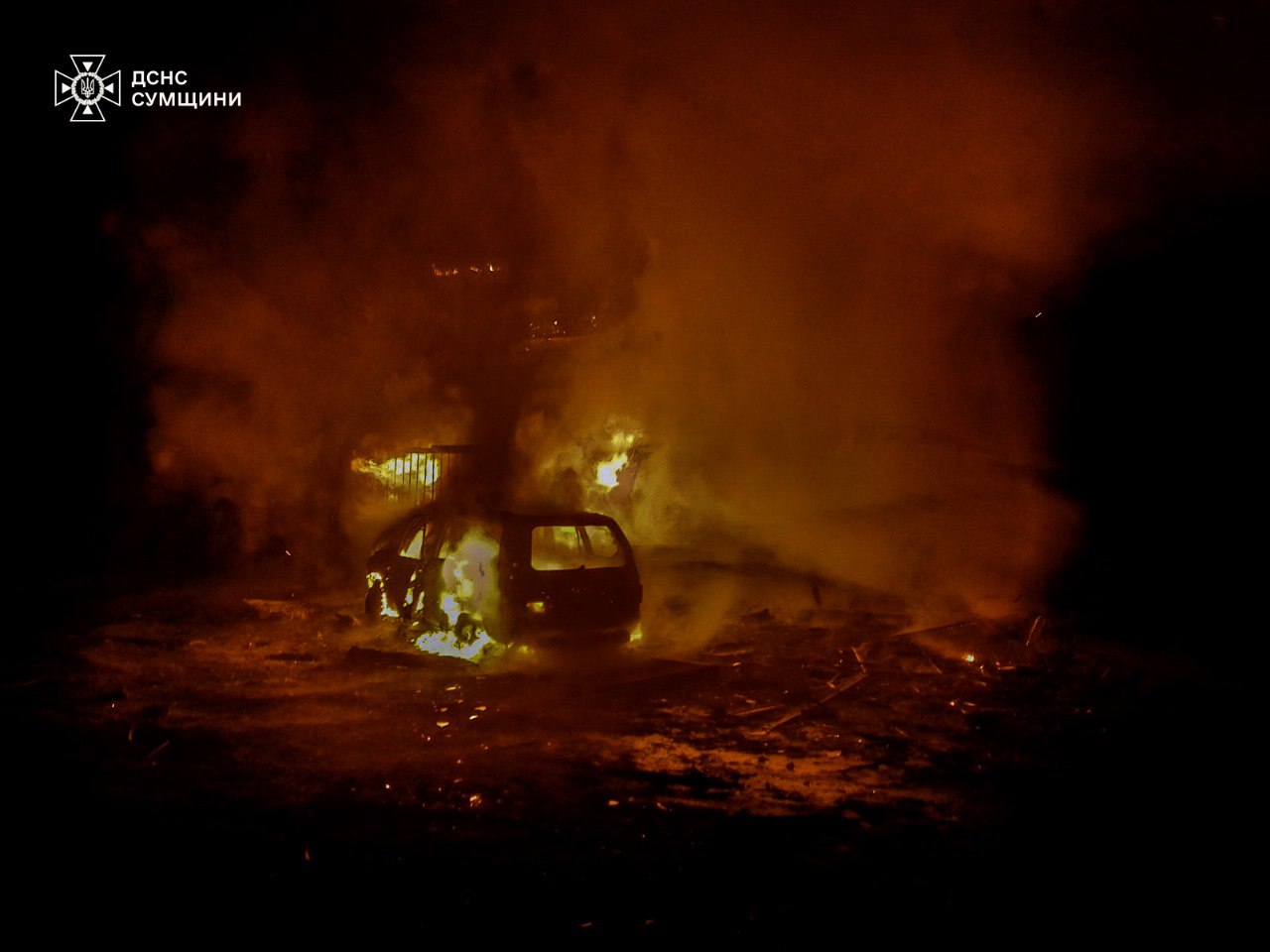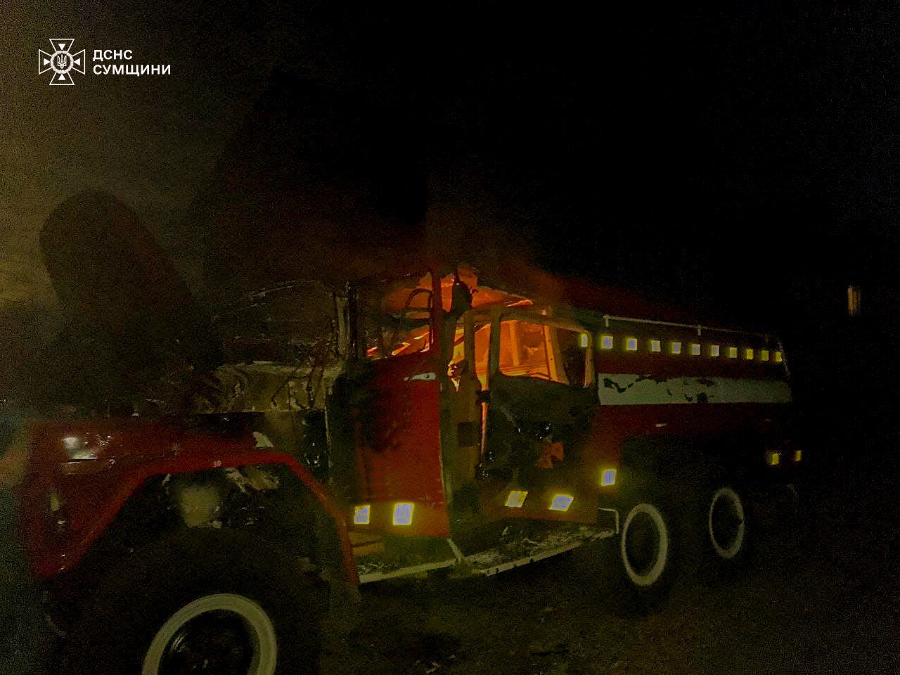 Противник атакував рятувальників Сумщини які приїхали гасити пожежу, через повторний удар було пошкоджено пожежний автомобіль.