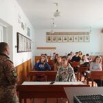 Військовослужбовці територіальних центрів комплектування та соціальної підтримки розповідають учням про українську армію, види озброєння та важливість захисту країни від окупантів.