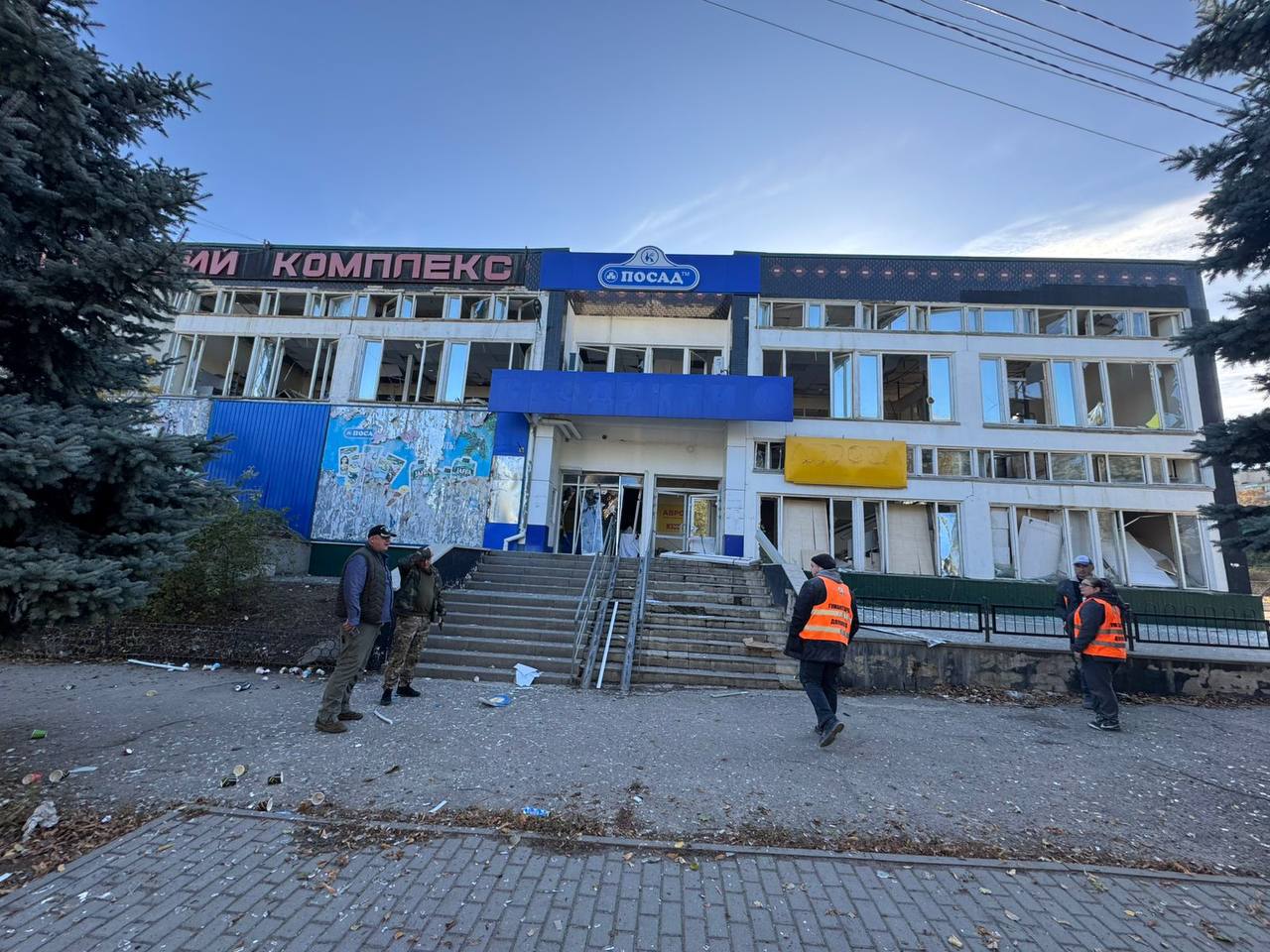Унаслідок обстрілу пошкоджено двоповерхову торговельну будівлю, кіоски, скління нежитлових будівель, розташованих поруч.