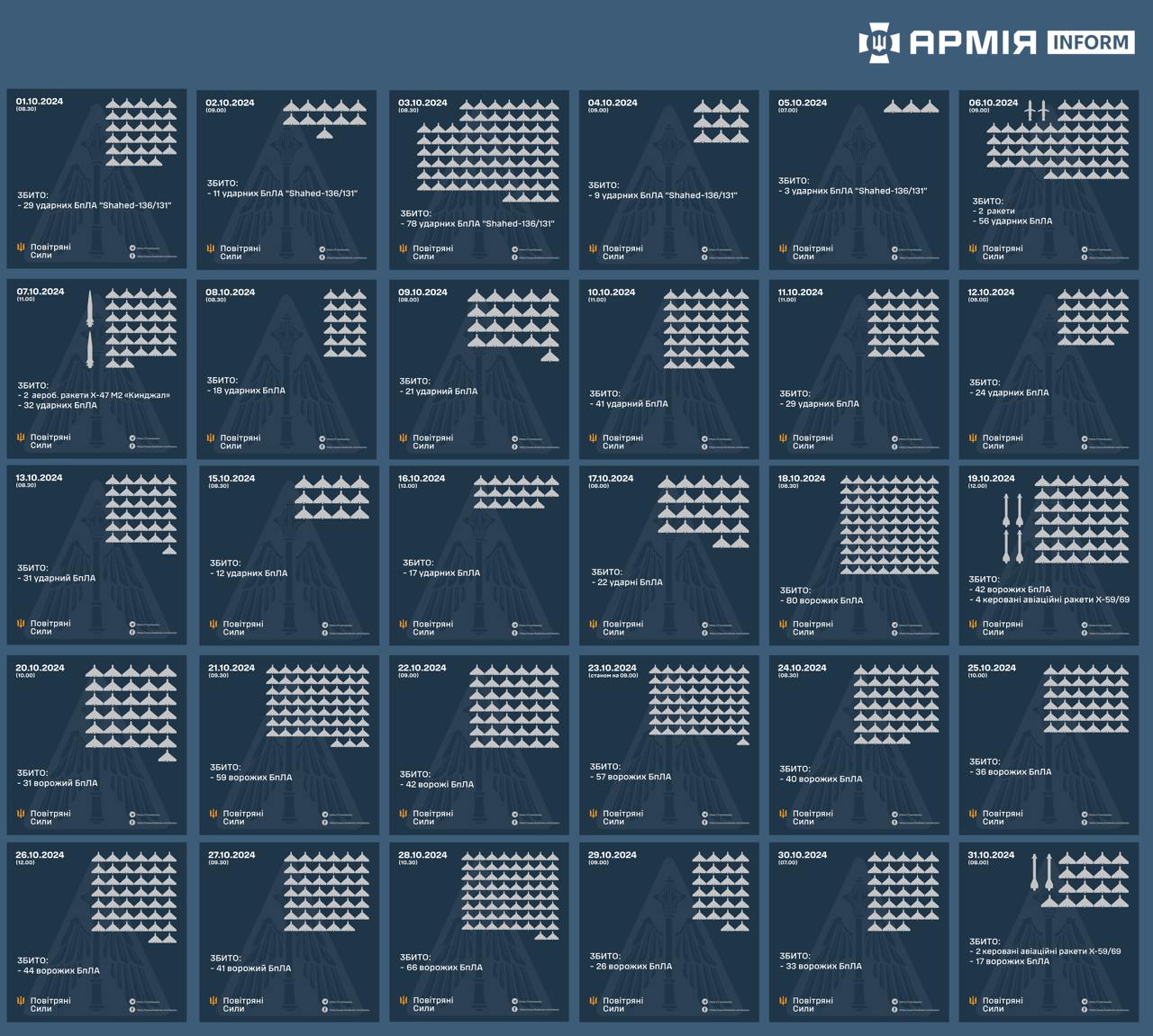 Загалом з початку 2024 року противник запустив по території України 6987 ударних БПЛА. Переважно ворожі дрони цілили по цивільній та критичній інфраструктурі України.