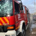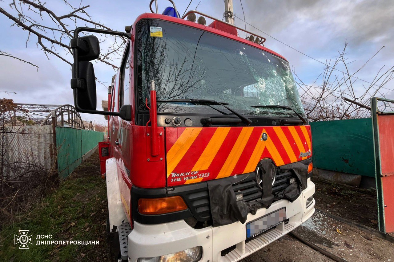 Під час її ліквідації ворог атакував рятувальників. Пошкоджений пожежно-рятувальний автомобіль.
