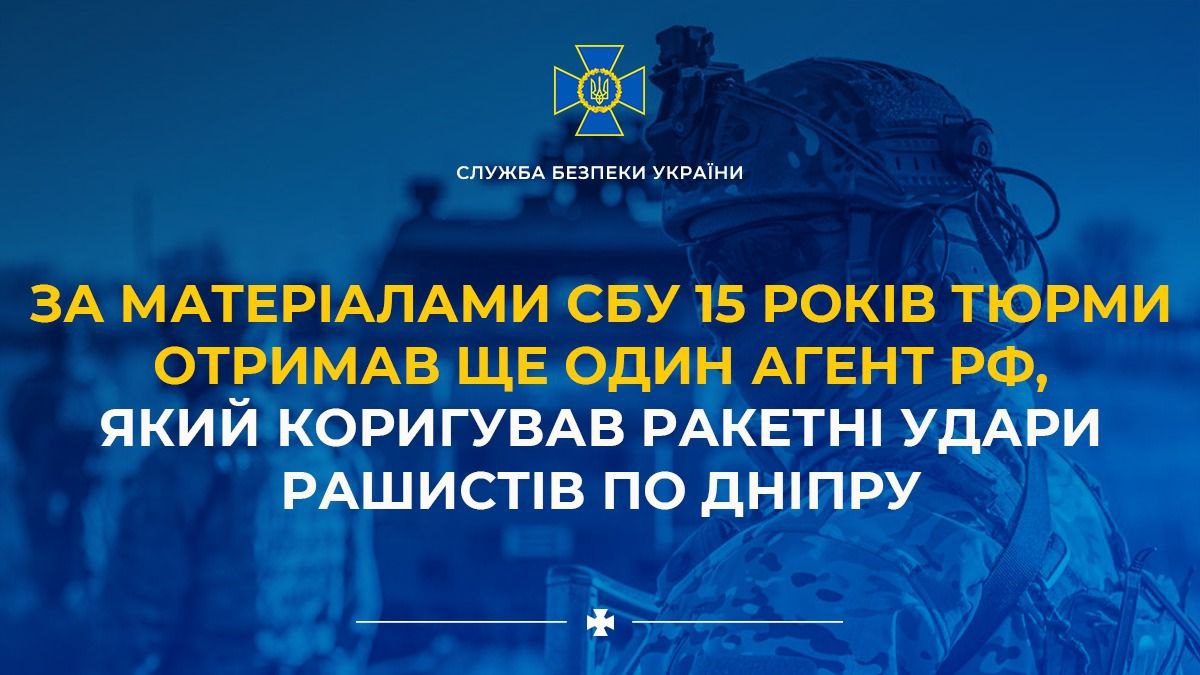 Реальний термін ув’язнення отримав ще один учасник агентурної мережі російської воєнної розвідки (більш відомої як гру), яка займалася коригуванням ракетних ударів ворога по Дніпру.
