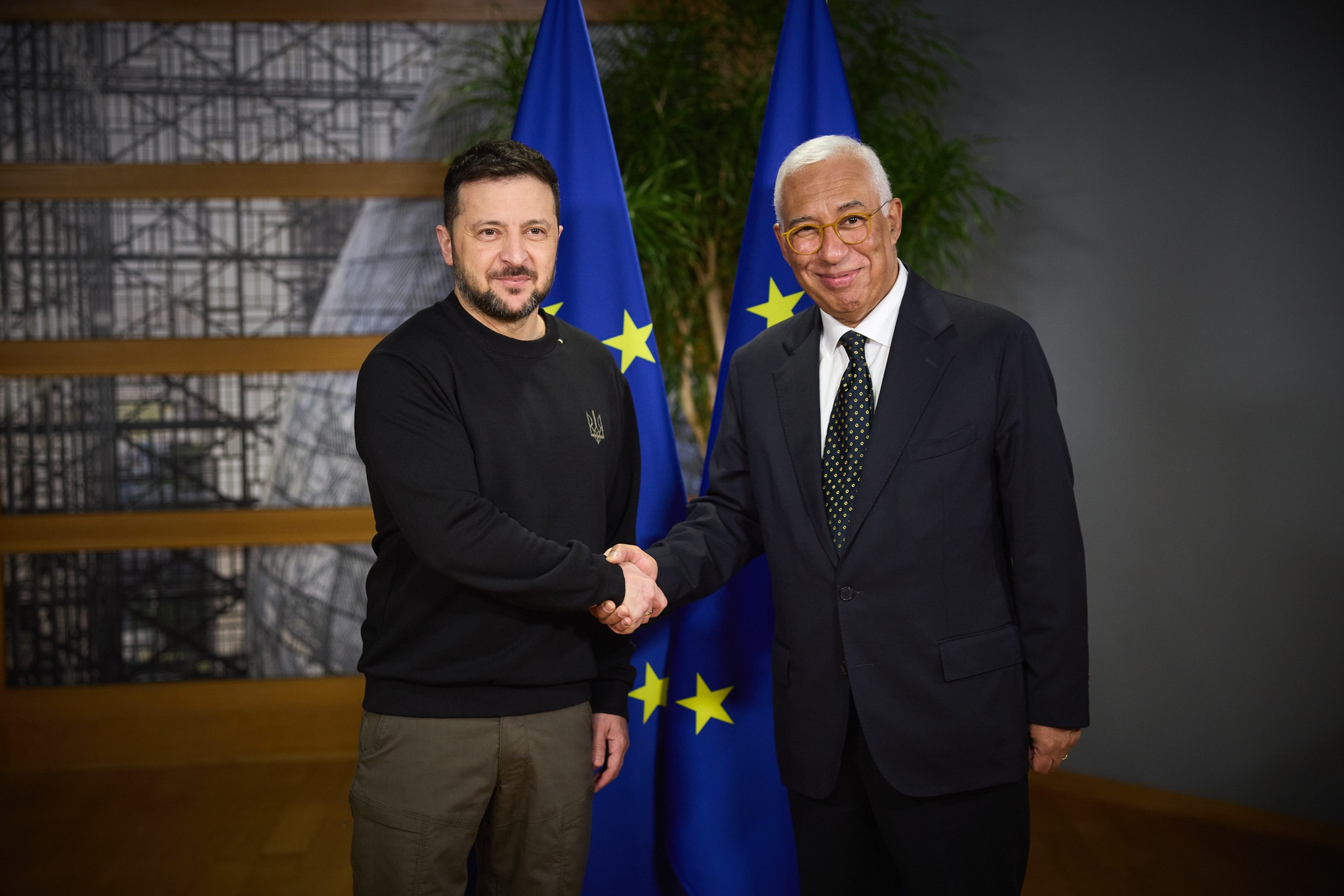 У Брюсселі Президент України Володимир Зеленський під час зустрічі з президентом Європейської ради Антоніу Коштою обговорив, як посилити Україну.