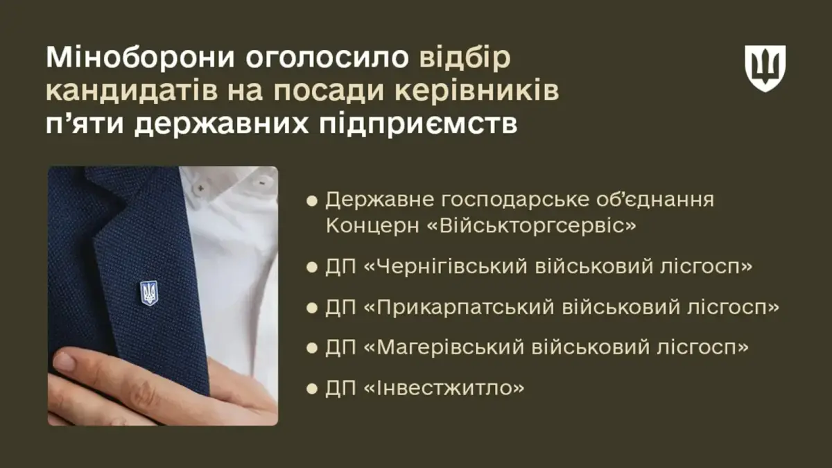 «Прозорість забезпечує рівні умови для всіх кандидатів і дозволяє обрати найбільш підготовлених і професійних керівників. Запрошуємо усіх зацікавлених осіб подавати свої кандидатури для участі у відборі та долучитися до розвитку важливих активів держави», – зазначив заступник міністра оборони України Дмитро Кліменков.