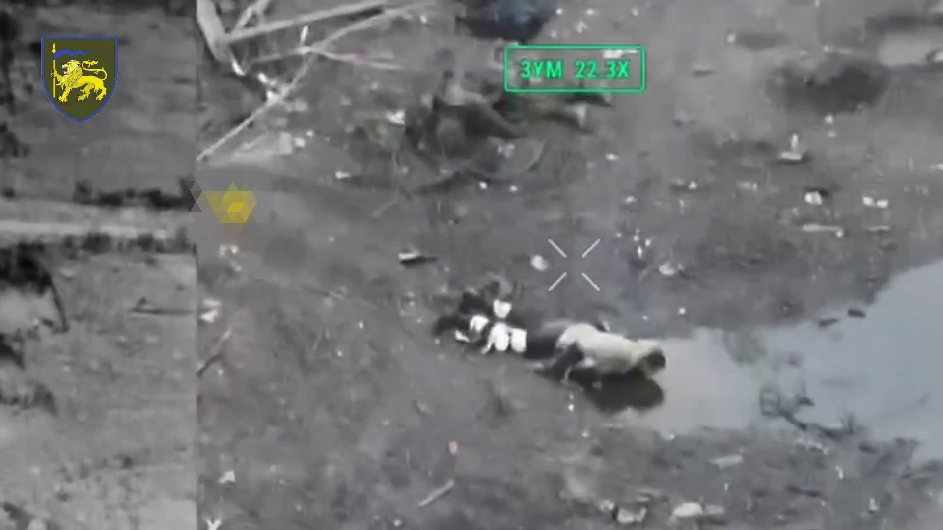 Бійці 60 механізованої Інгулецької бригади зафіксували російського солдата, який ховався у руїнах гаража, звідки виповзав лише для того, щоб попити з калюжі.