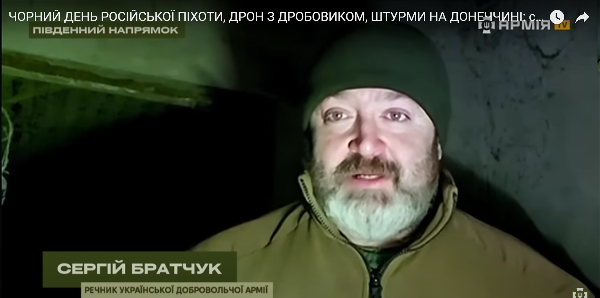 Про це на стріміАрміїTV заявив речник Української добровольчої армії «Південь» Сергій Братчук.