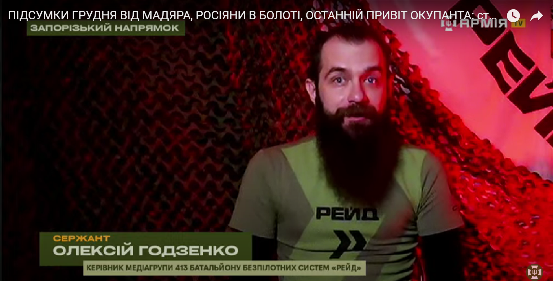 Про це на стрімі АрміїTV 3 січня розповів керівник медіагрупи 413 батальйону безпілотних систем «Рейд» сержант Олексій Годзенко.