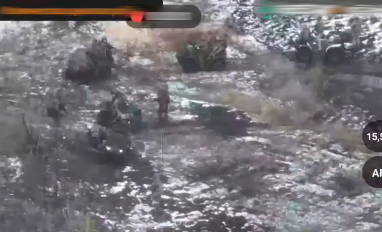 Зазначено, що після знищення легкової техніки, оператори ударних дронів взялися за планомірну ліквідацію ворожої піхоти, яка розосередилась по місцевості.