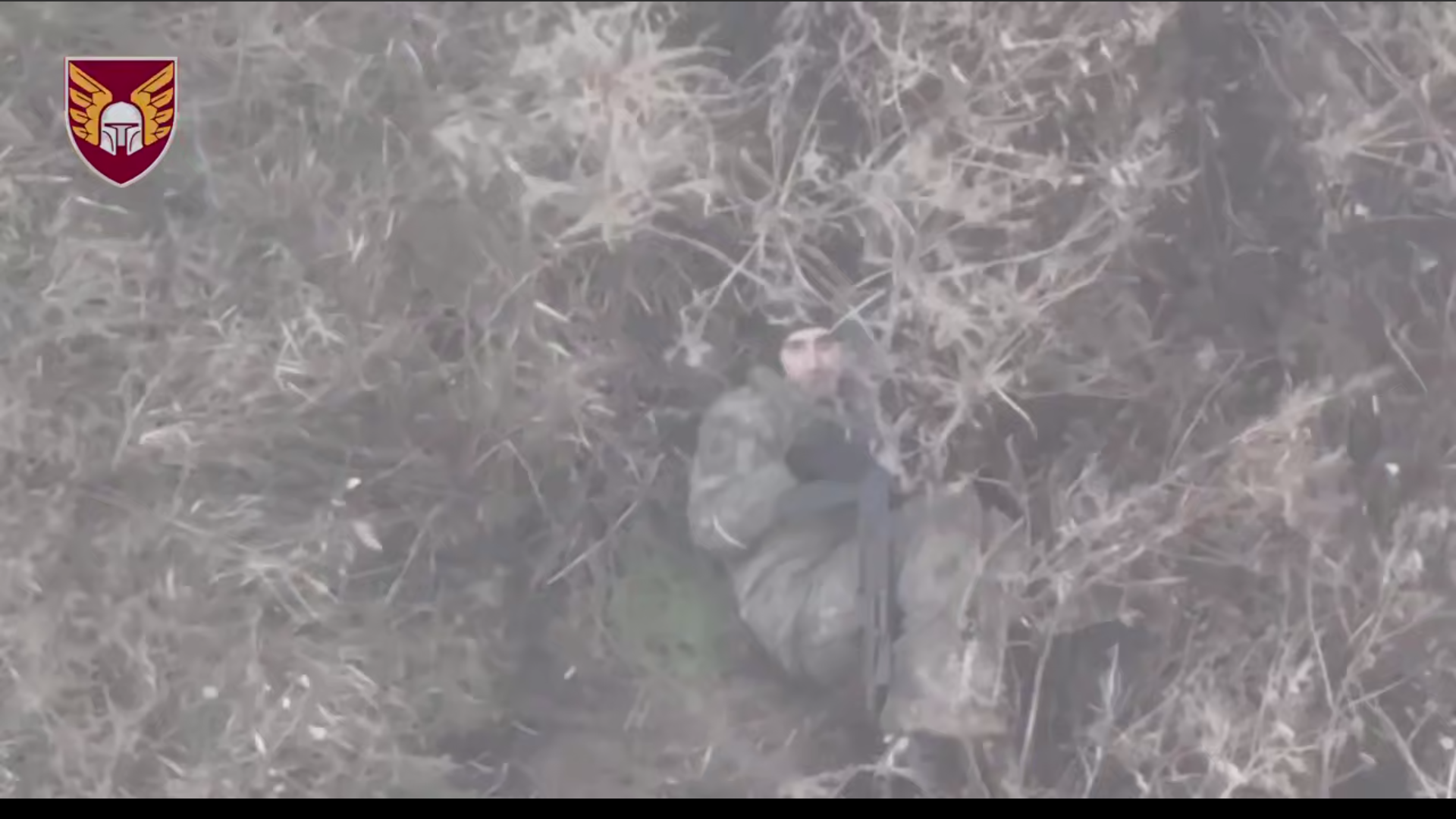 На кадрах видно, як російські штурмовики навіть не намагаються втекти до своїх, ховаються у кущах і приречено дивляться в камери дронів, які прилетіли їх нищити.