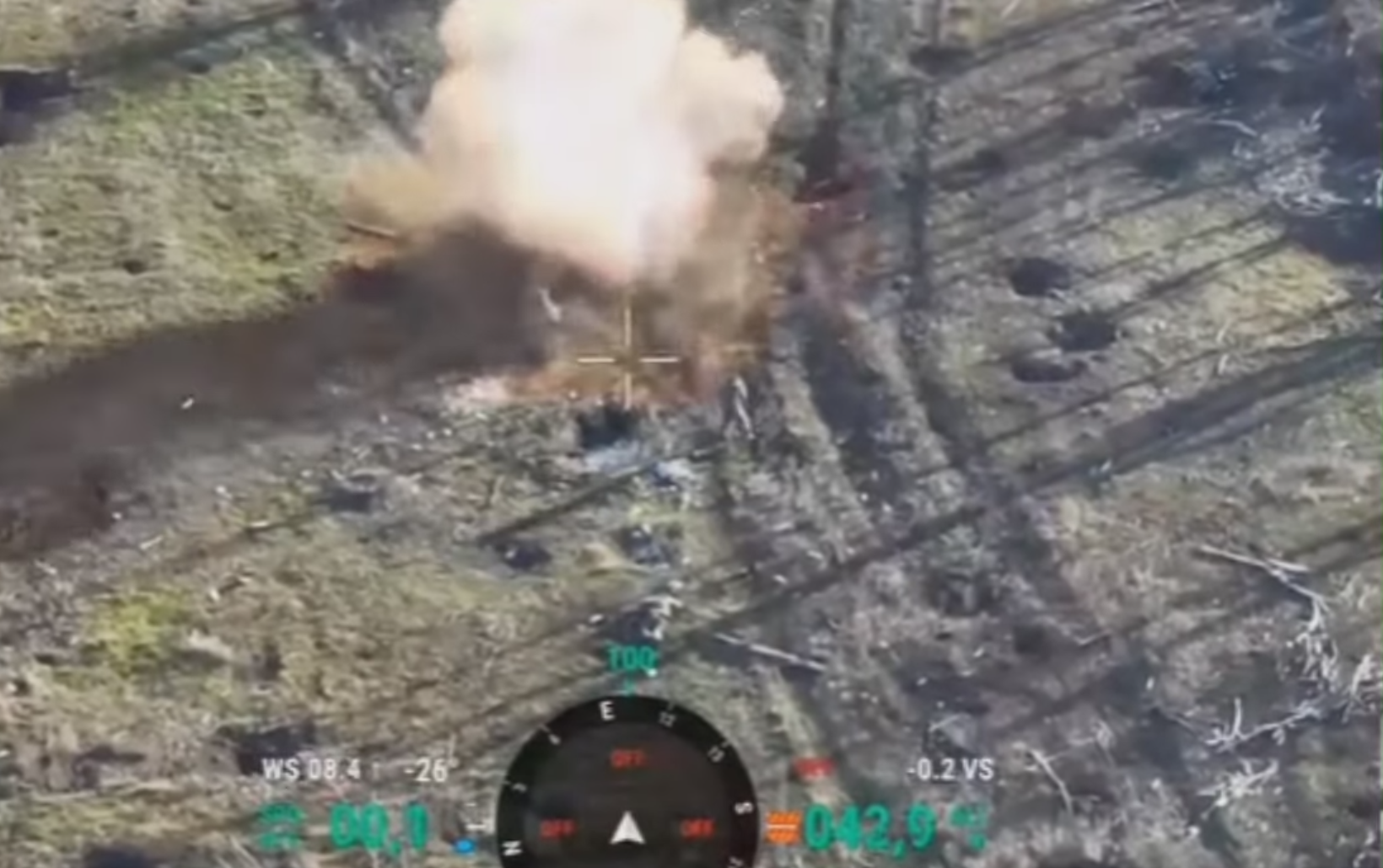 Коли дрон наблизився впритул, один росіян кинув свою милицю, а другий вдарив і влучив. Відбувся вибух, після якого той, хто вижив, зміг оцінити дурість товариша.