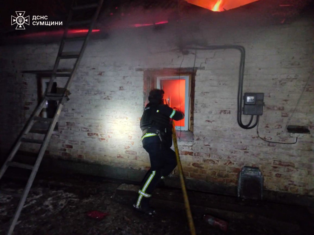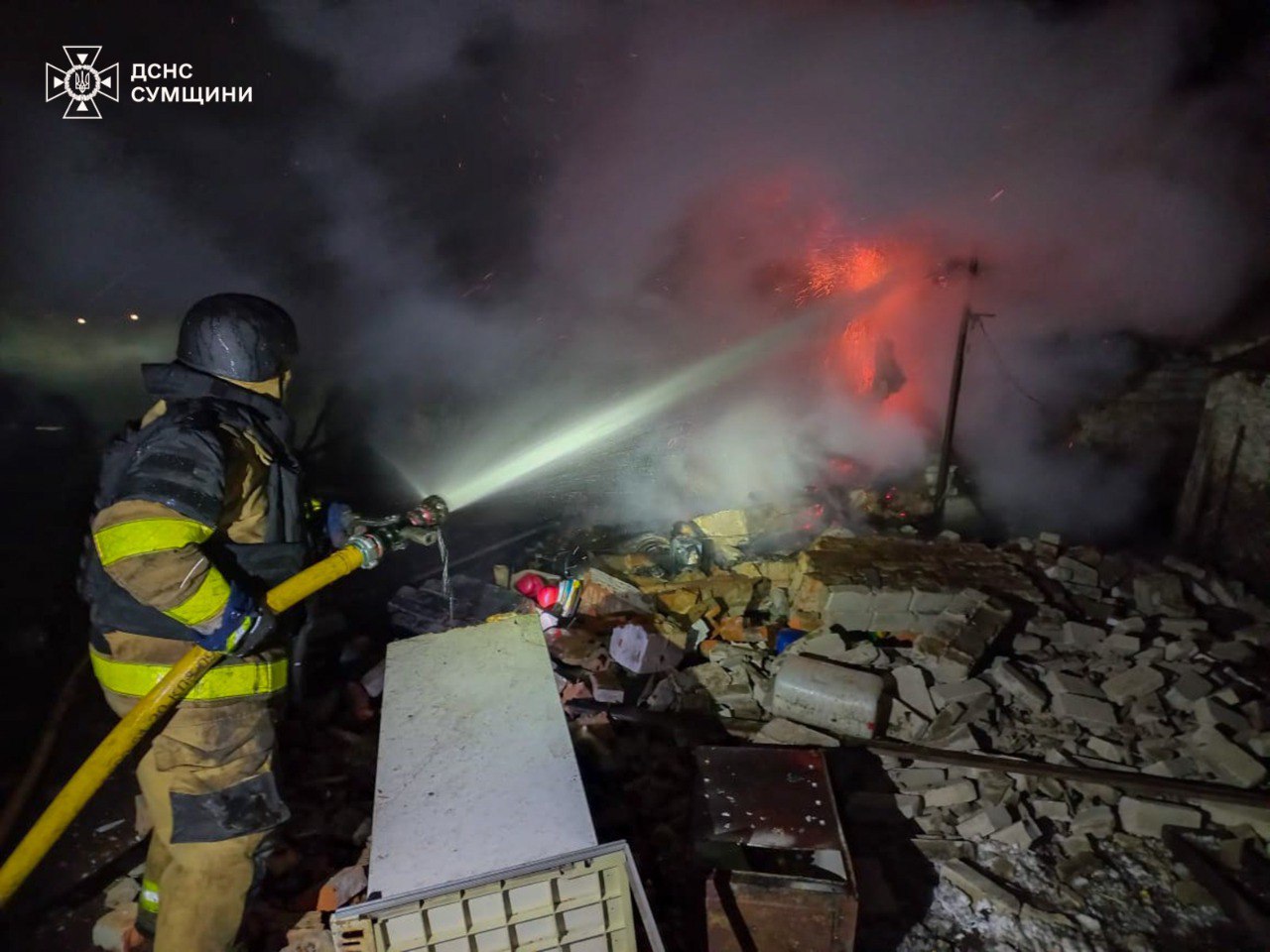 Увечері 13 січня один із населених пунктів Конотопського району зазнав атаки ворожих безпілотників. У результаті обстрілу виникла пожежа у житловому секторі.