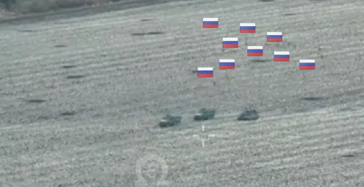 «Окупанти задіяли декілька одиниць техніки, у тому числі і броньовану. Камера розвідувального дрона зафіксувала знищення техніки разом з окупантами», — йдеться в описі до оприлюднених кадрів.