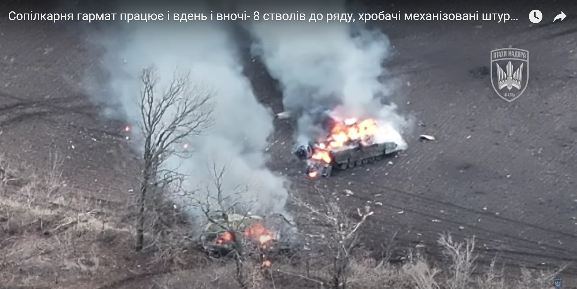 Наші дронарі знищили до десятка бойових броньованих машин ворога, які рухалися з десантом в бік наших позицій.