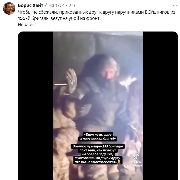 Ба більше, навіть його автор визнав, що насправді на фронт у кайданках везуть військових 155-ї окремої гвардійської бригади морської піхоти тихоокеанського флоту рф.