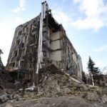 Президент України Володимир Зеленський заявив, що через російський удар по Ізюму зруйновано частину будівлі міської ради.