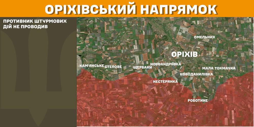 На Харківському, Оріхівському та Придніпровському напрямках минулої доби противник штурмових дій не проводив.